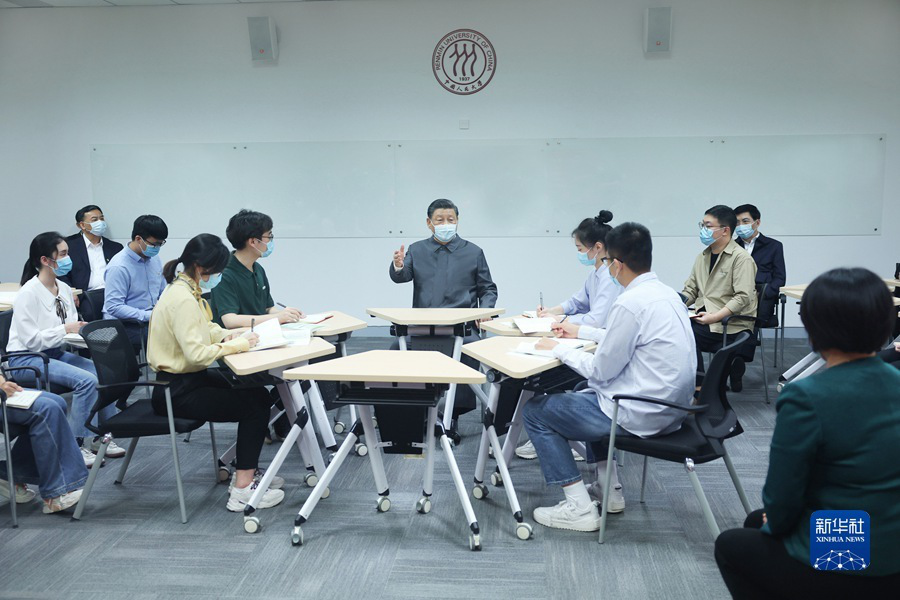 4月25日上午,中共中央總書記、國家主席、中央軍委主席習(xí)近平來到中國人民大學(xué)考察調(diào)研。這是習(xí)近平在立德樓觀摩思政課智慧教室現(xiàn)場教學(xué)并參與討論。新華社記者 鞠鵬 攝